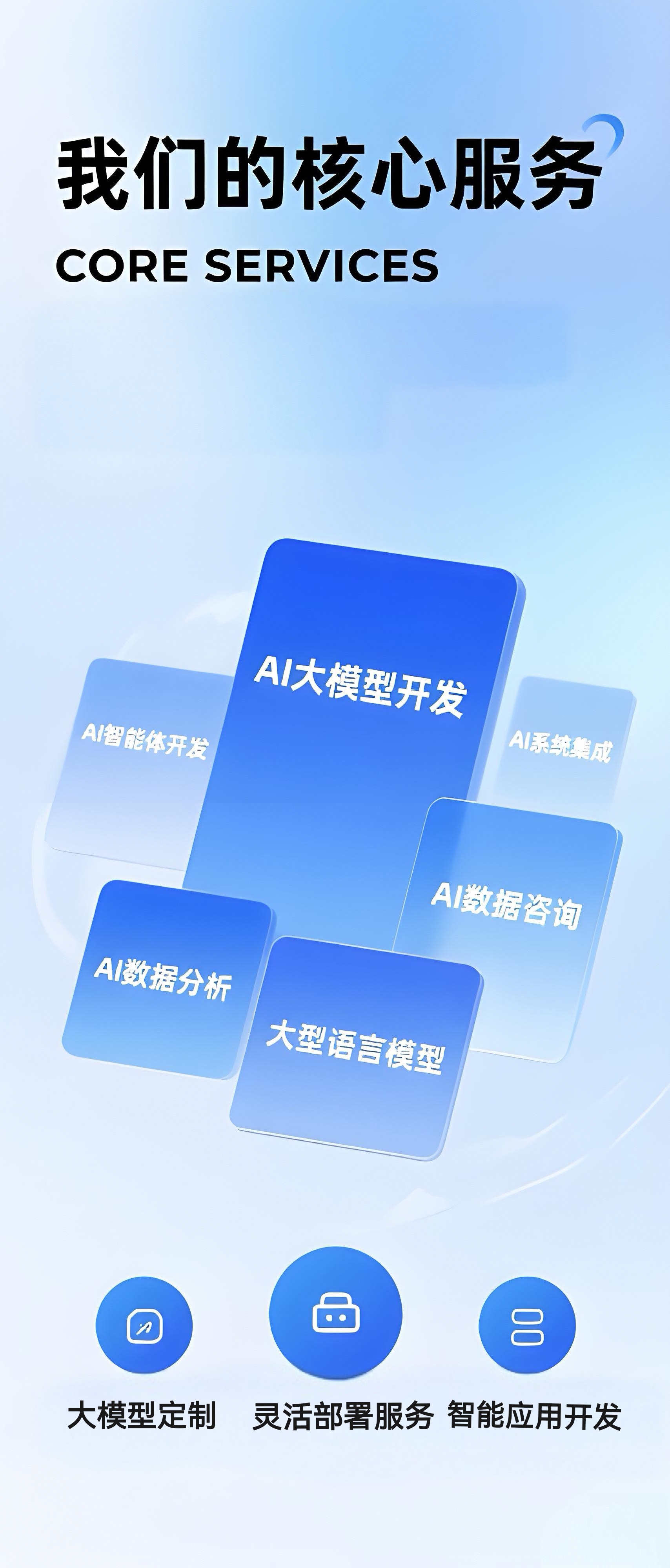 我们是专业的AI解决方案提供商,致力于为企业提供一站式大模型服务, 助力企业实现智能化转型,提升竞争力。通过持续创新和深度定制, 我们为各行各业带来AI驱动的革新体验。